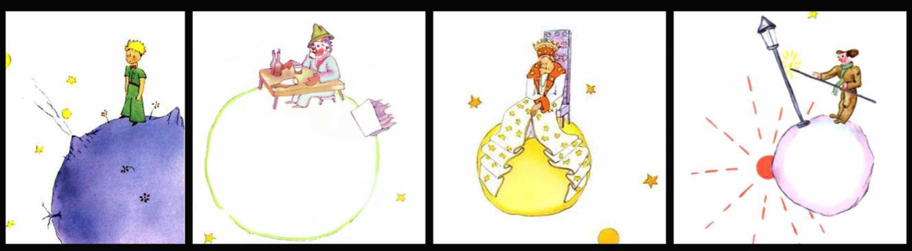L'écrivain Saint-Exupéry avec son roman philosophique Le Petit Prince est l'inspiration principale. Les personnages que le Petit Prince rencontre nous interrogent sur les Hommes et leurs aspirations. Ils sont presque tous centrés sur eux-mêmes, dans des mondes devenus si petits, qu'ils ne perçoivent plus le sens de leur place parmi les autres.